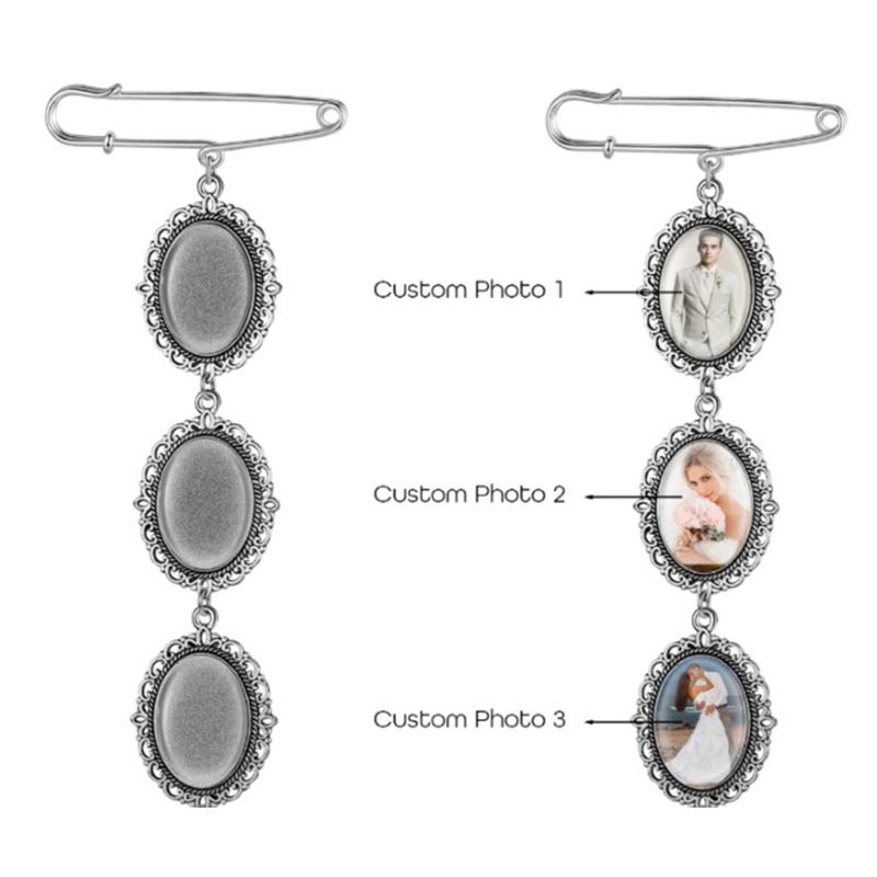 Элегантная золотая фотоброшь-булавка для воспоминаний для шляпы, рубашки, лацкана, золотая брошь с фотографией, памятная бутоньерка