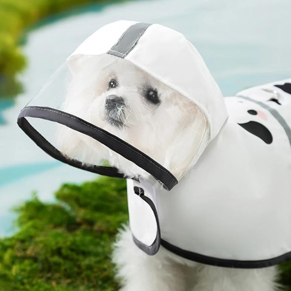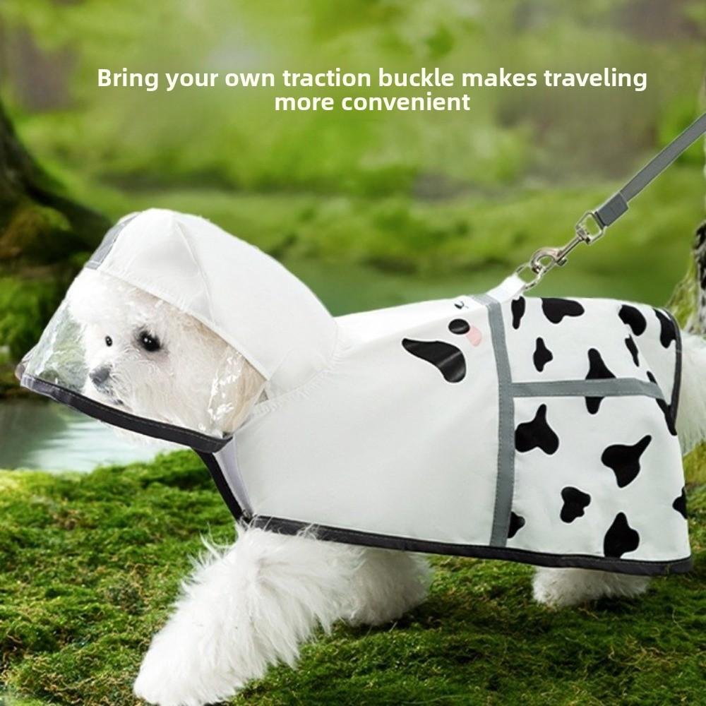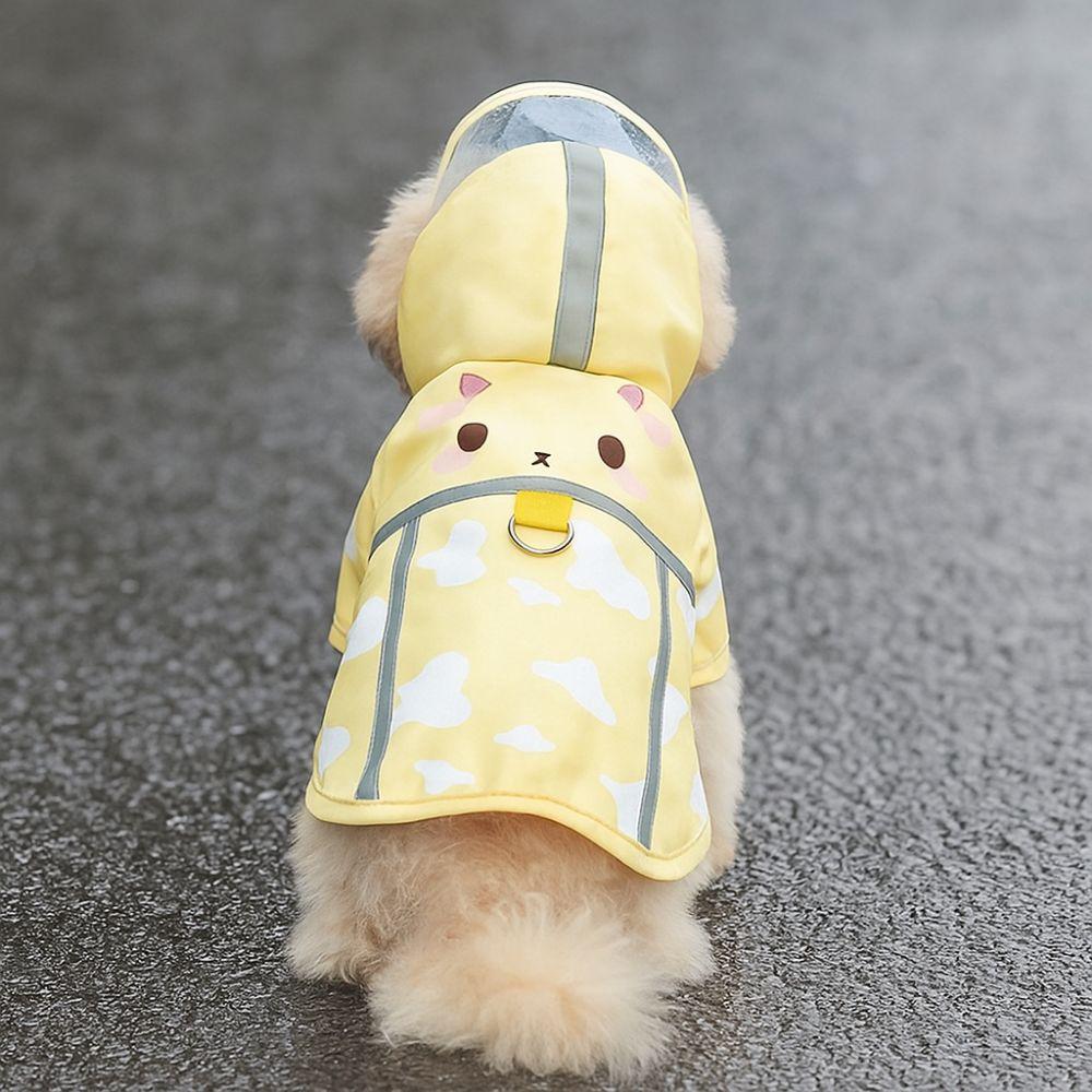 Плащ для питомца Мультяшный дождевик для собаки Водонепроницаемый полиэстер Дождевик для собаки с капюшоном Светоотражающая полоса Одежда для щенка Лето