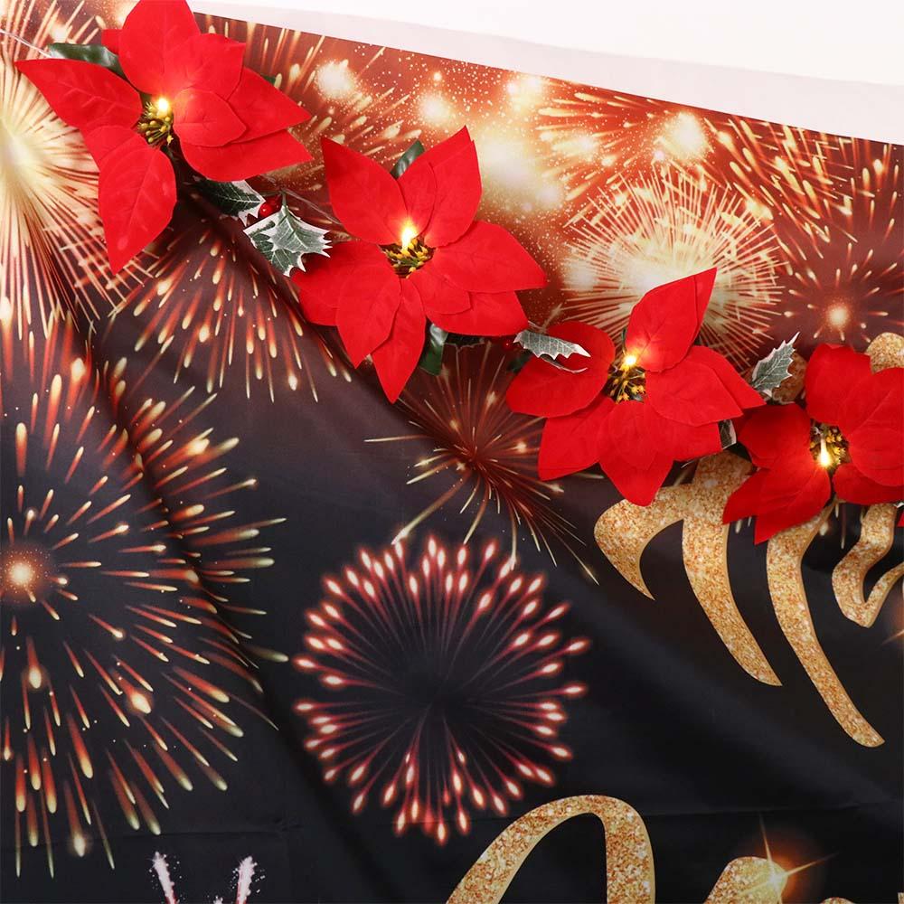Imitation Velvet Poinsettia Garland String Lights Battery Powered 2m 10 LEDs Christmas Flower Garland Lamps with Red Berries