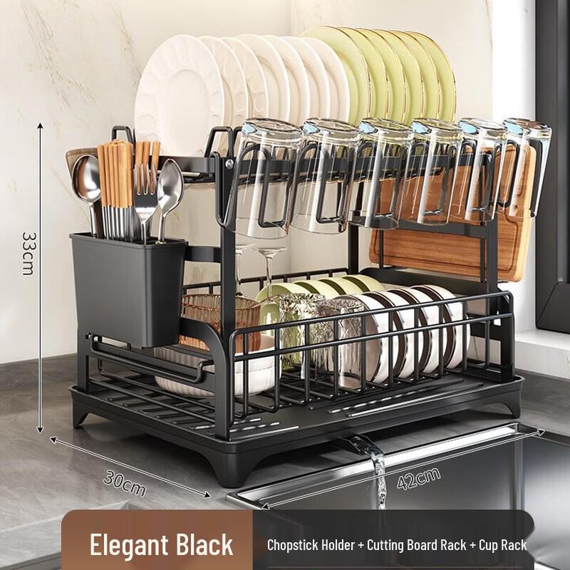 МодельЧерная двухъярусная подставка для мисок и чашек - Полный набор