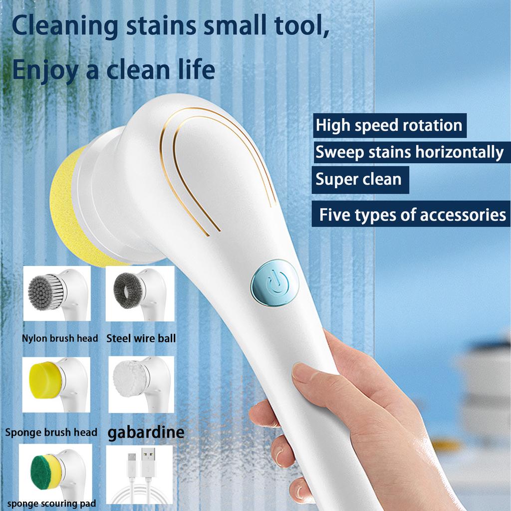 Бытовая электрическая щетка для чистки 5-в-1 Щетка для мытья ванной комнаты Инструмент для чистки кухни USB Ручная щетка для ванны Электрическая щетка для очистки раковины