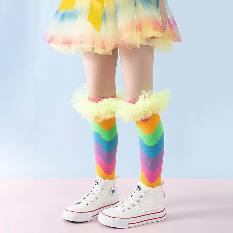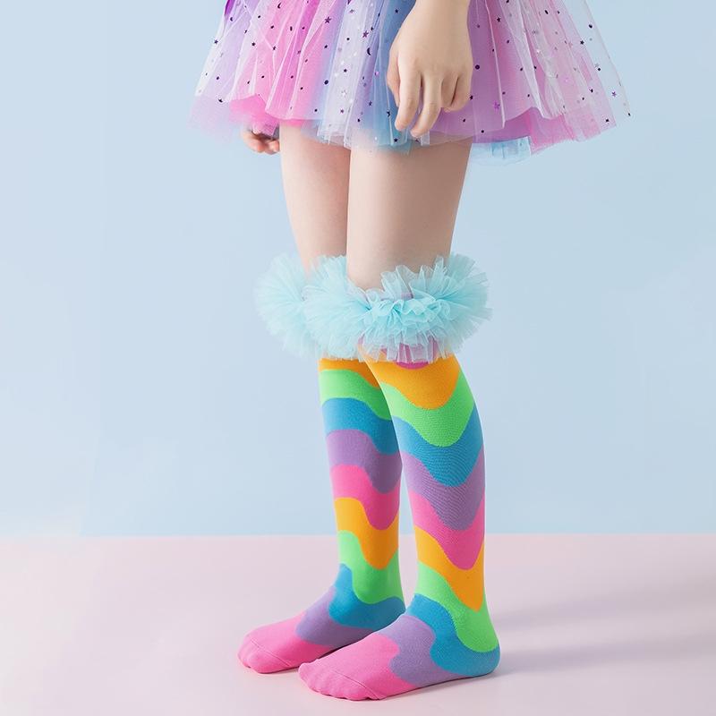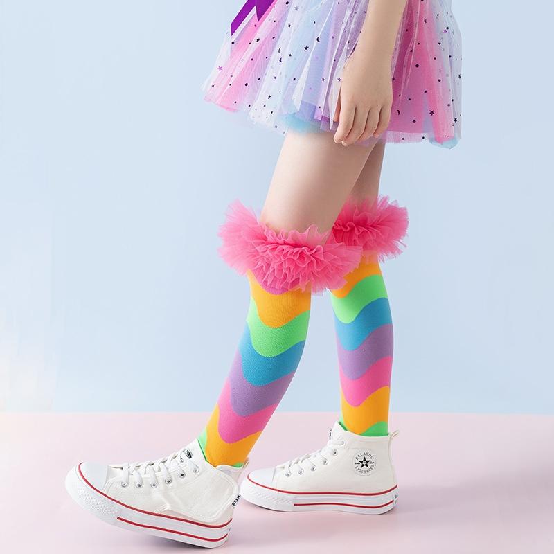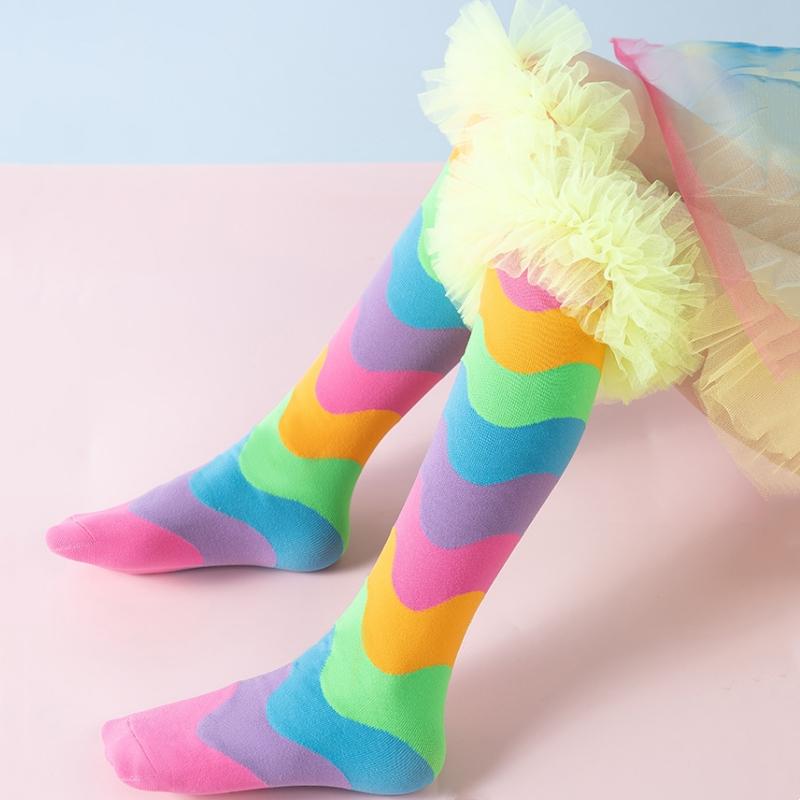 Радужные Колготки с Лоскутным Узором для Девочек, Сборки, Праздничные, Детские, Носки Принцессы, Модные, Мягкие, Без Пятки, Детские, Осенние, Весенние, Длинные Носки