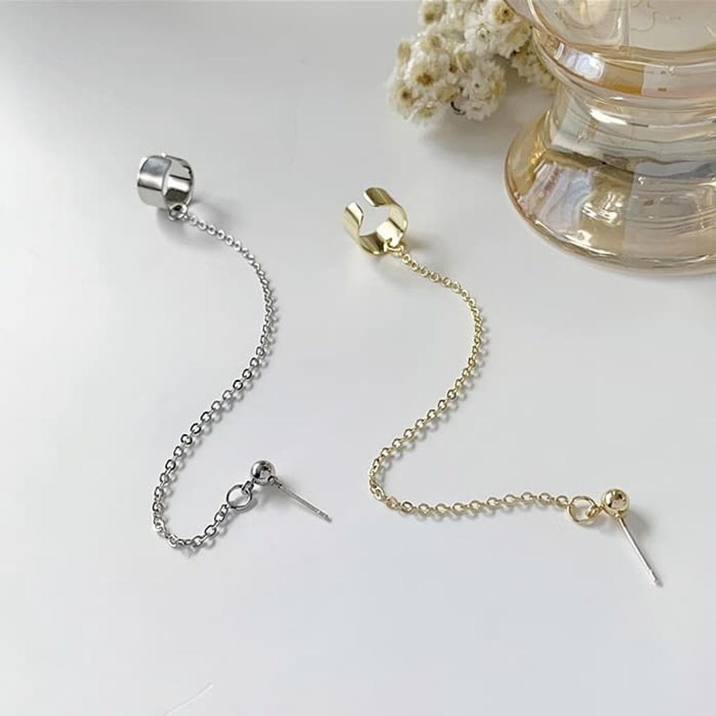 Daily ear cuff earrings plain chain silver needle — купить товар онлайн с бесплатной доставкой по всему миру!