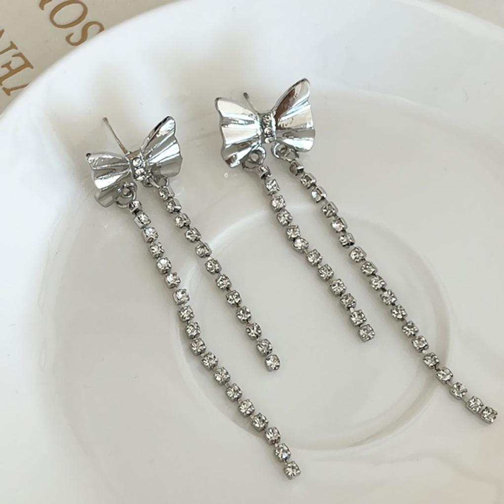Women's Silver Ribbon Stainless Steel Drop Earrings with Silver Needle
