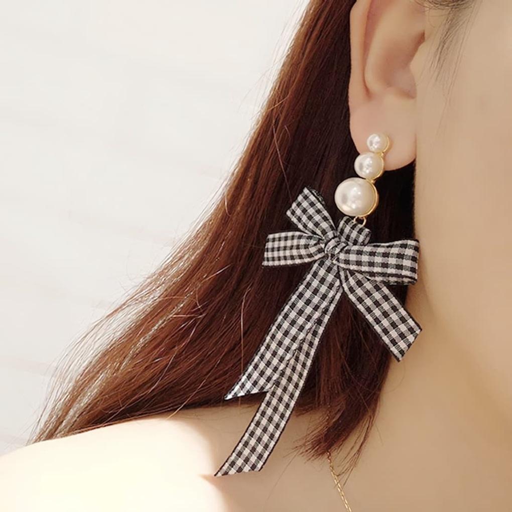 Earrings, chain, daily houndstooth check ribbon — купить товар онлайн с бесплатной доставкой по всему миру!