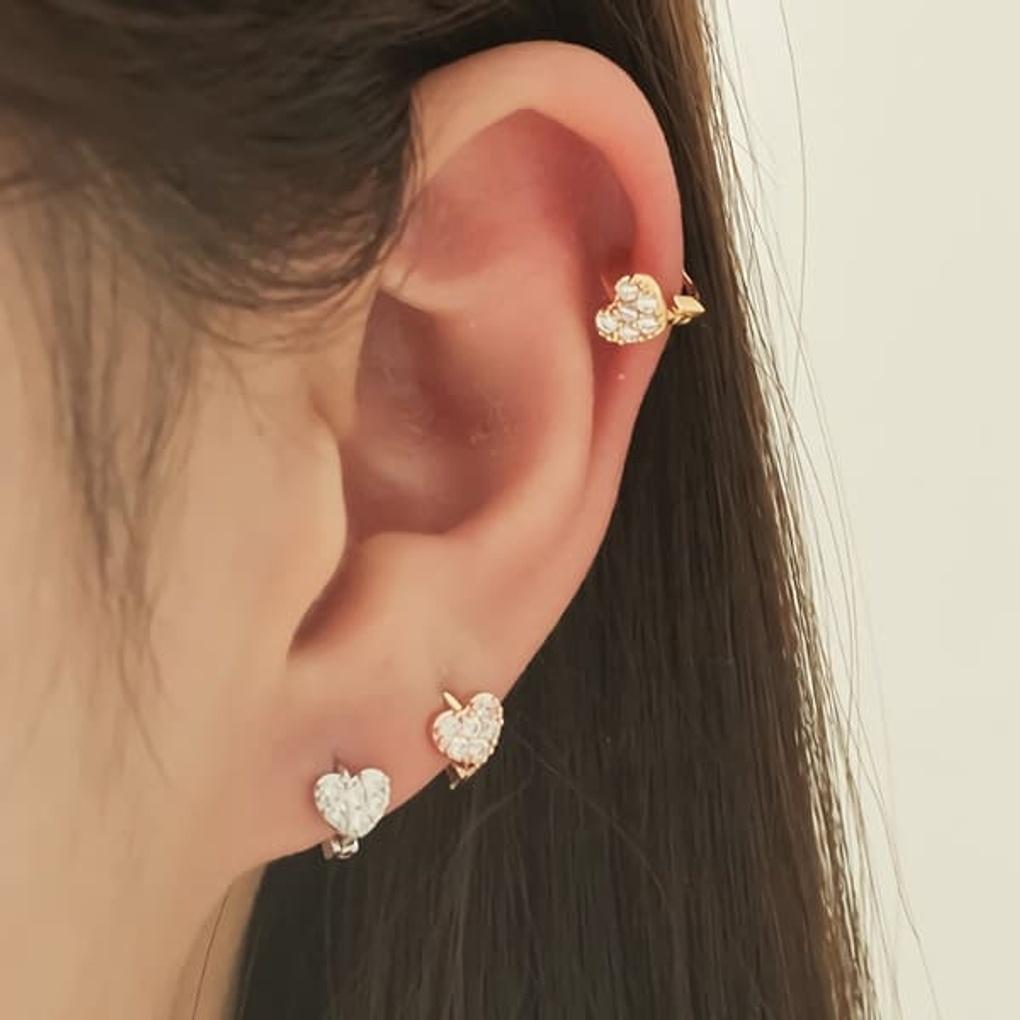 Women's One-Touch Big Heart Piercing Inner Conch Earrings
