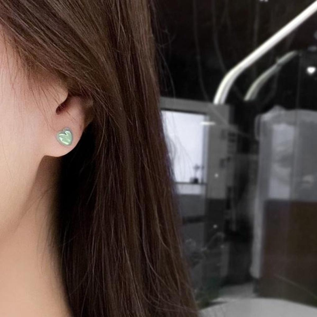 Women's Heart Powder Mini Silver Needle Earrings Set