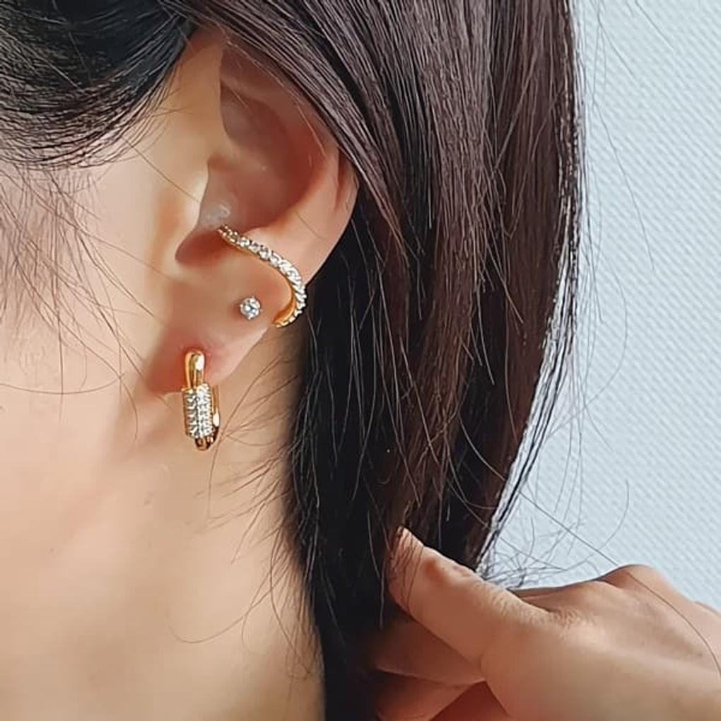 Women's Daily 15K Gold Plated Level Cubic Zirconia Ear Cuff Earrings