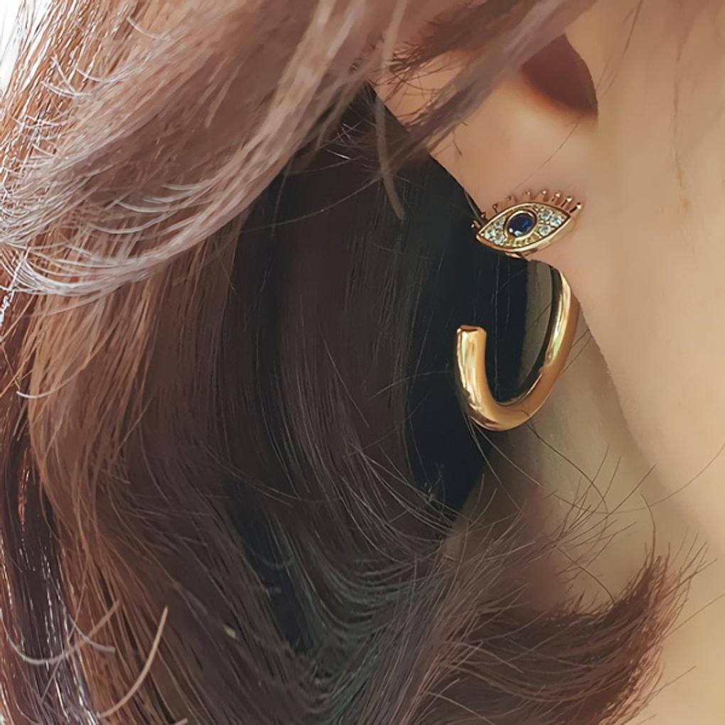 Женские титановые серьги-кольца с иглой и асимметричным сглазом