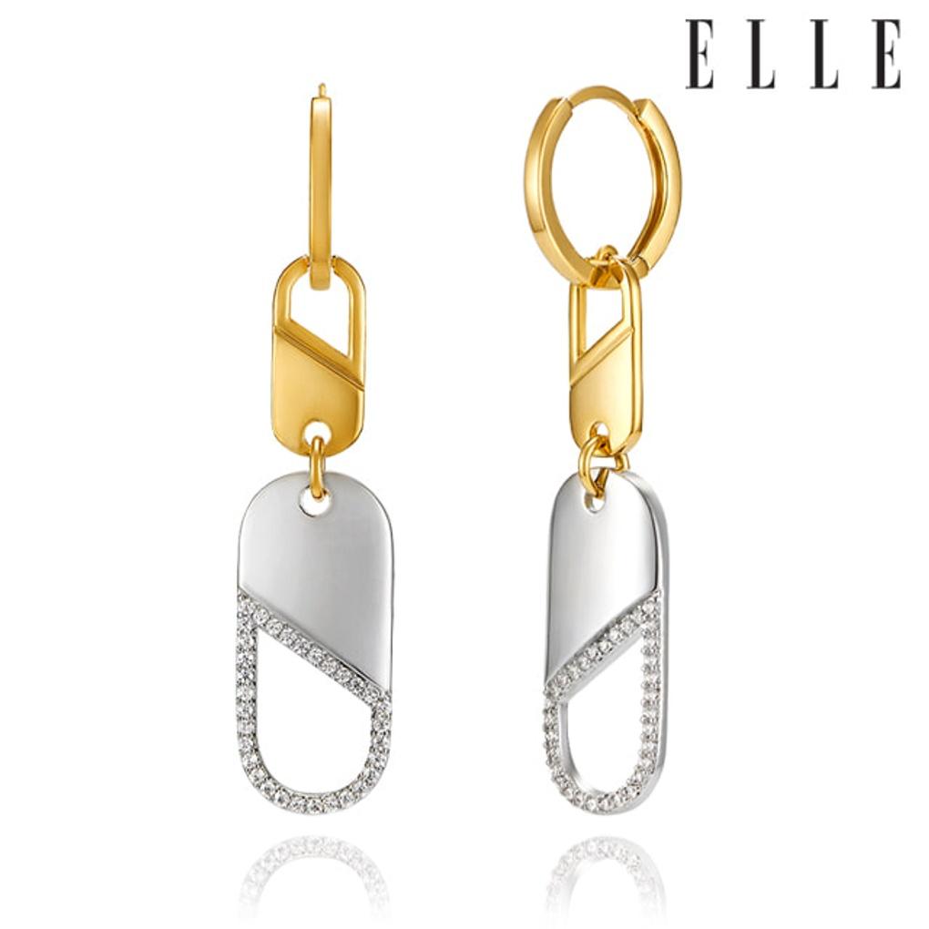 14K Combi Drop One-Touch Earrings (Gold Pin) ELGPEE391