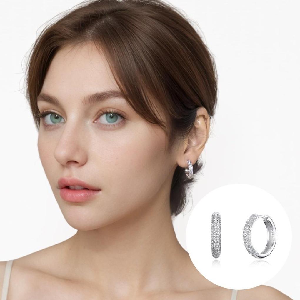 [TANDY] TANDY Silver 925 Zirconia Luxury Cubic One-Touch Earrings TDE307 Silver