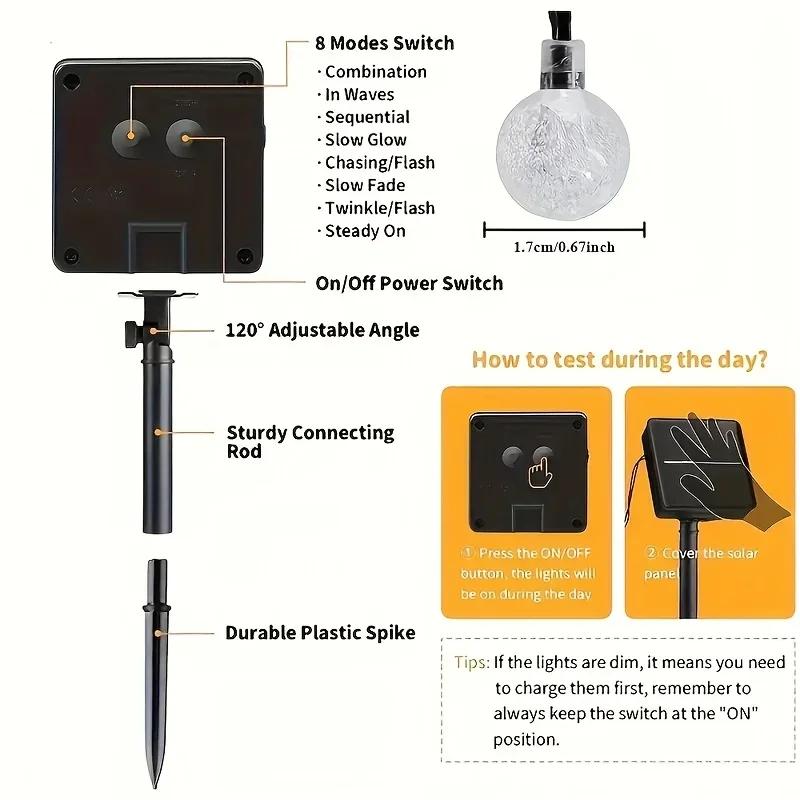 Waterproof Solar Crystal Ball String Lights 20/30/50/100 LEDs 8 Modes for Outdoor Garden Wedding Christmas Party Decoration