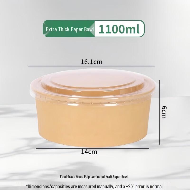 Sanbile 1100ML Extra Thick Disposable Kraft Paper Bowls with Lids