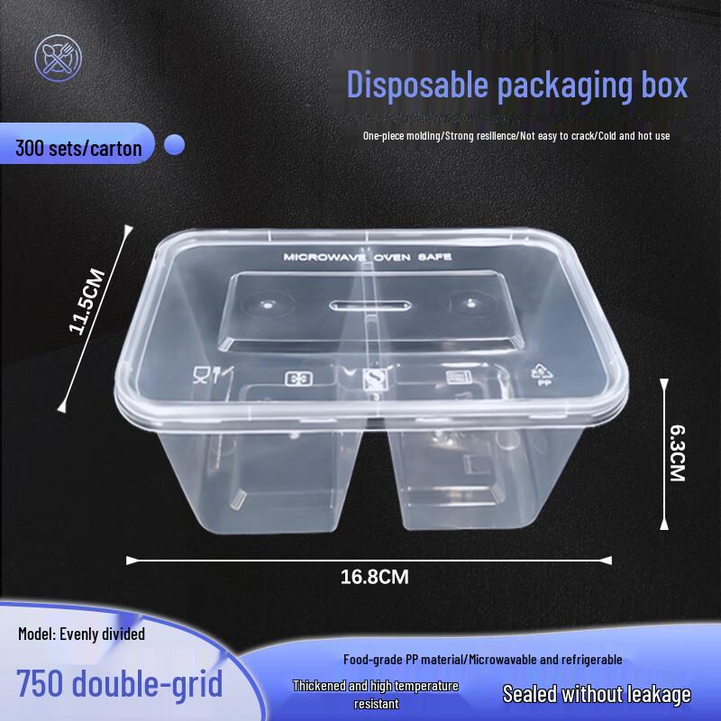 VeBox 750ml 2-Compartment Microwavable Disposable Food Containers