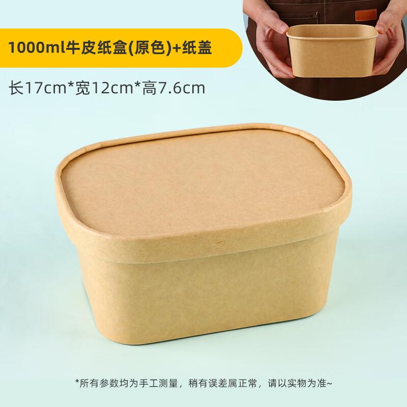 MOLUONA 1000ml Disposable Rectangular Paper Meal Boxes with Lids, 100 Sets