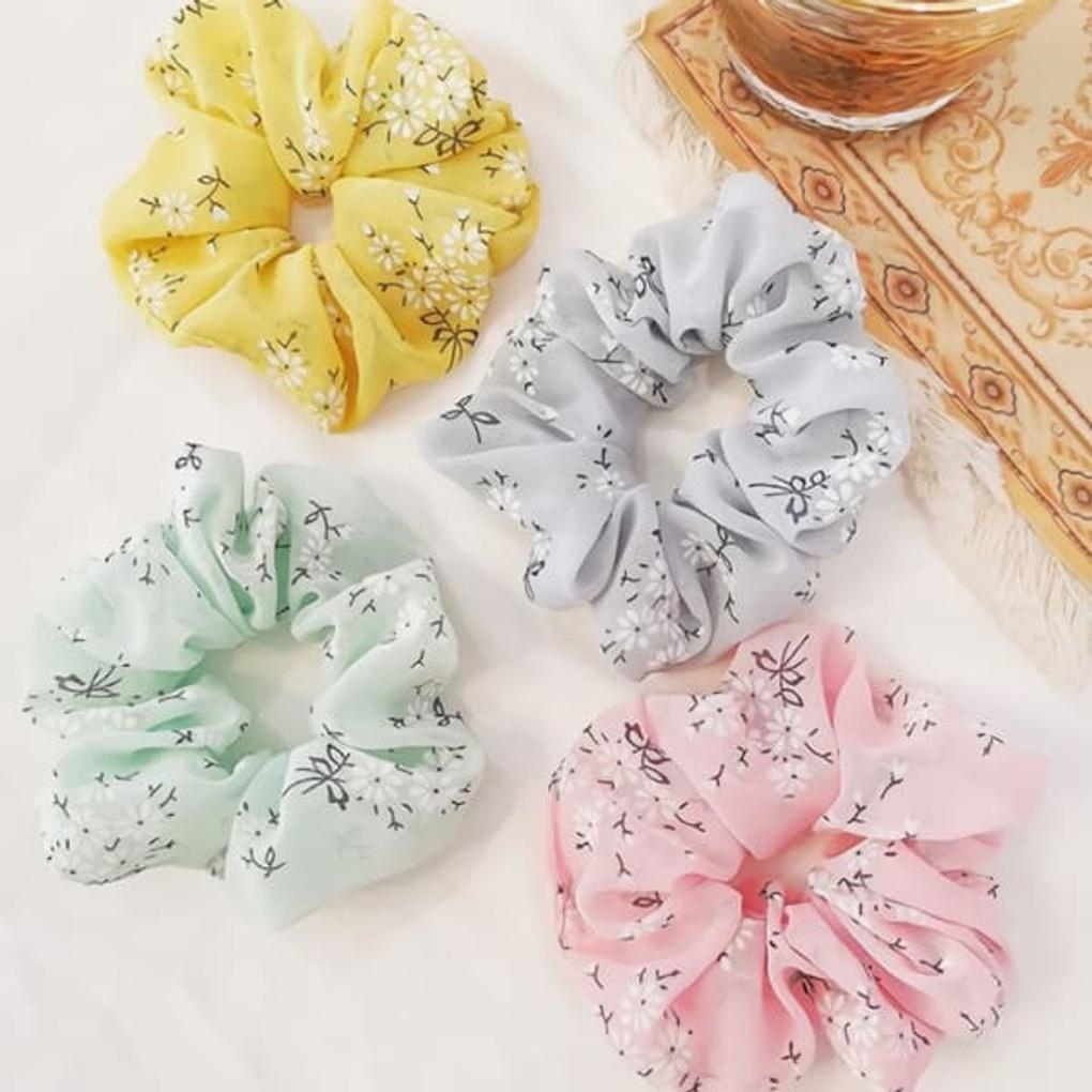 Женская маленькая резинка для волос с цветочным принтом и вязаной крючком полоской
