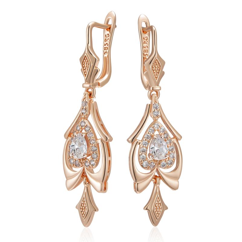 Изящные серьги-капли цвета розового золота для женщин, с кристаллами в виде цветов, белым натуральным цирконом, аксессуары, повседневные винтажные украшения — купить товар онлайн с бесплатной доставкой по всему миру!