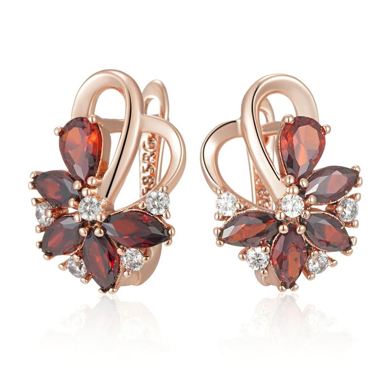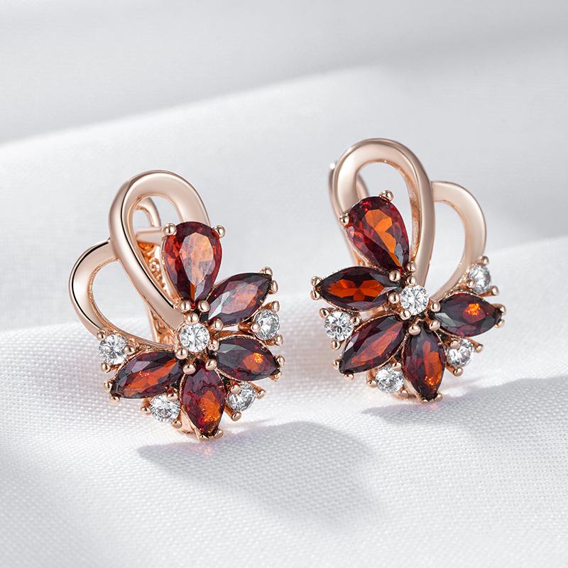 Уникальный дизайн Цвет розового золота Английские серьги для женщин Красные натуральные цирконы Аксессуары Этнические Свадебные Повседневные украшения