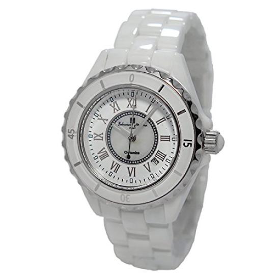 Salvatore Marra Analog Quartz Watch with Date Ceramic Unidirectional Rotating and Watch Cloth Included Women's Display, Bezel, (WHR) [Used]