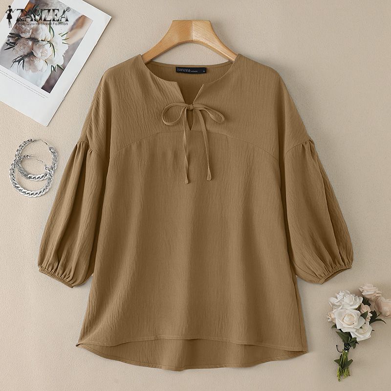 ZANZEA Женская повседневная однотонная блузка с круглым вырезом и рукавом 3/4 — купить товар онлайн с бесплатной доставкой по всему миру!