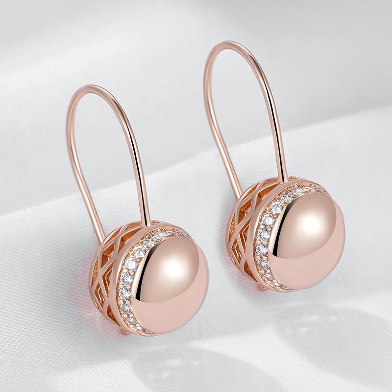 Серьги-подвески в цвете розового золота с большим глянцевым шаром для женщин, простые аксессуары с натуральным цирконом, этнические свадебные украшения для невесты