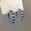 Большие круглые серьги с синими и белыми цирконами, женская мода, преувеличенные четырехугольные геометрические украшения, европейский американский стиль