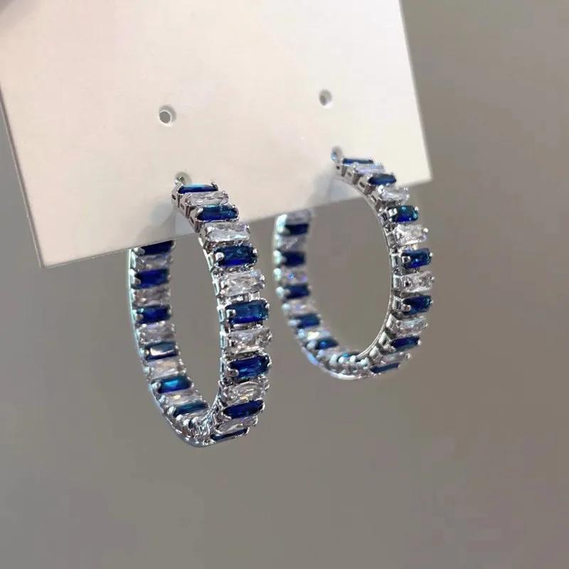 Большие круглые серьги с синими и белыми цирконами, женская мода, преувеличенные четырехугольные геометрические украшения, европейский американский стиль — купить товар онлайн с бесплатной доставкой по всему миру!