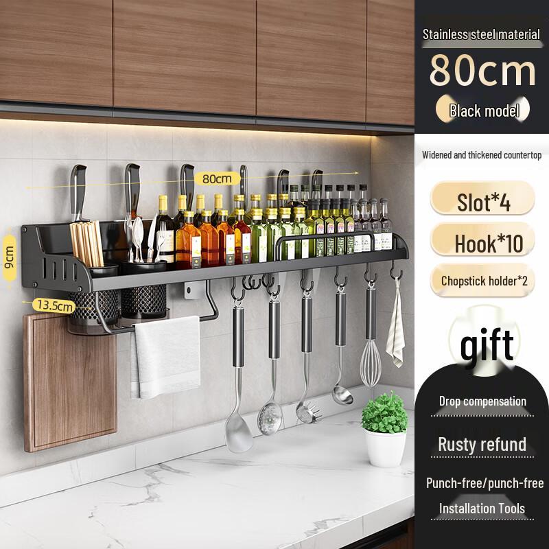 Stainless Steel Kitchen Organizer Shelf with Hooks and Knife Slots