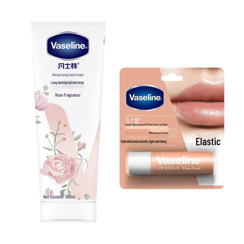 Vaseline Rose Hand Cream & White Peach Lip Balm Set