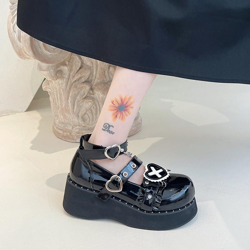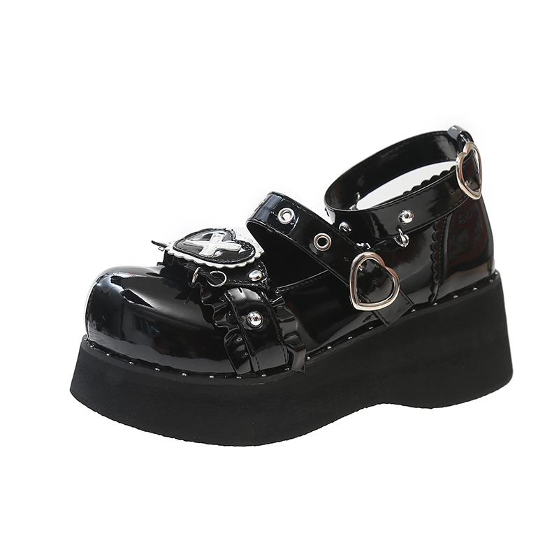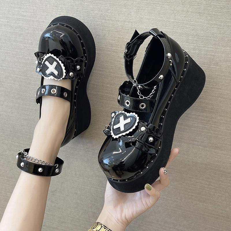 Панк-металлические цепочки Крутые туфли Лолита Женские лакированные туфли Мэри Джейн Женские готические туфли на толстой платформе Черные одинарные туфли Y2K