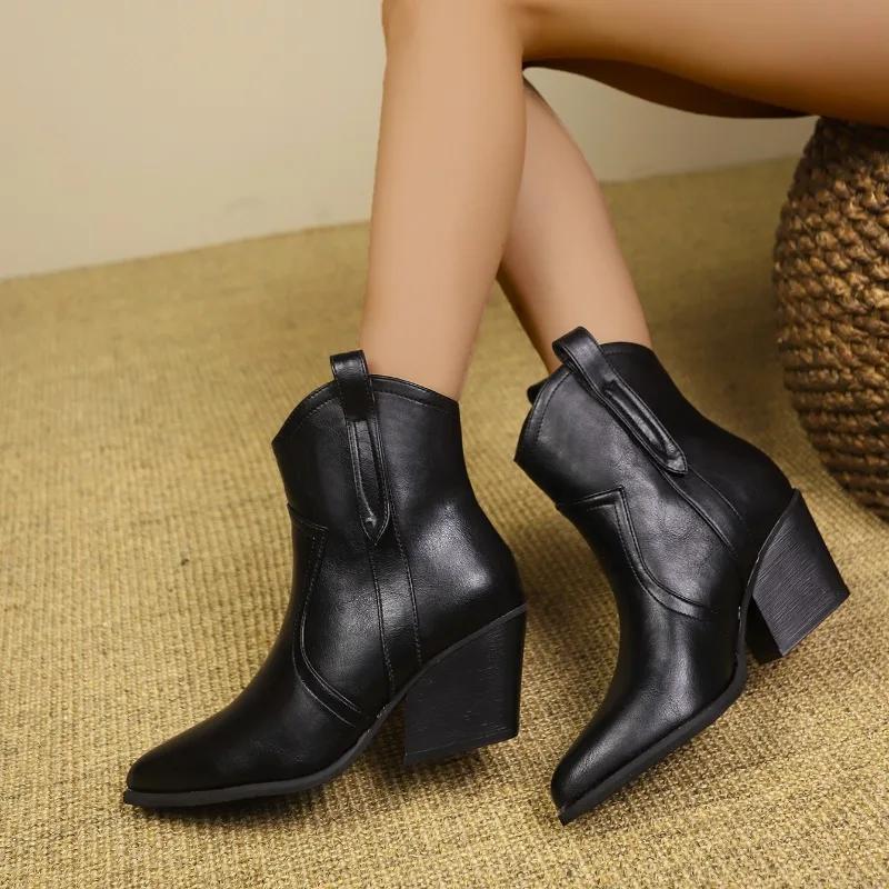 Женские ботильоны из натуральной кожи, короткие ботинки на осень-зиму, на толстом каблуке, с острым носком, для женщин, для зрелых женщин, для офиса