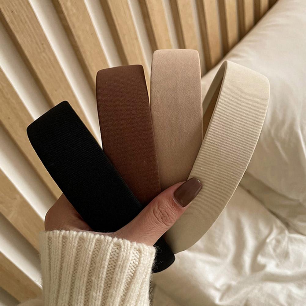Модные однотонные широкие повязки на голову для женщин и девушек, шириной 3 см, нескользящие, эластичные, толстые резинки для волос, обруч для волос, трендовый зимний осенний стиль