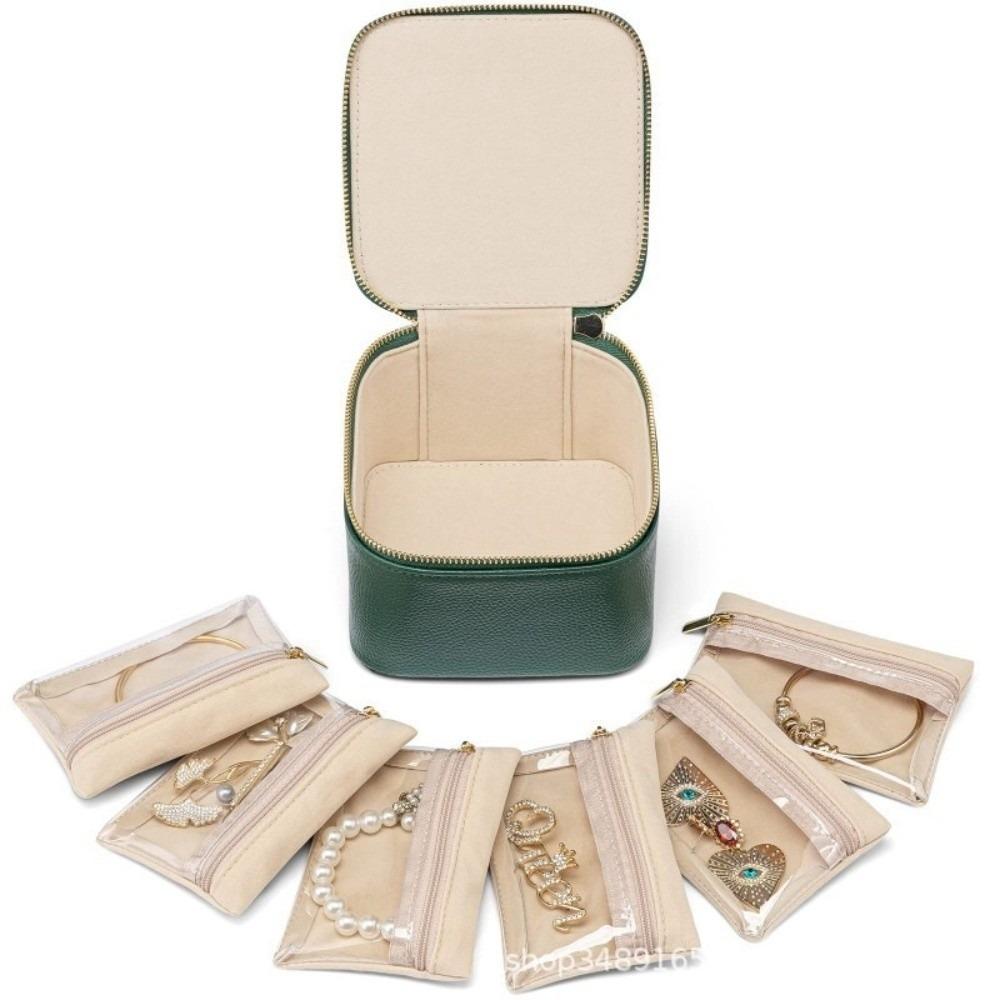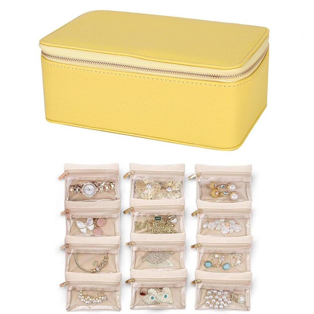 Portable Travel Jewelry Box Large Capacity PU Leather Jewelry Case with 6/12pcs Small Pouches Jewelry Storage Box