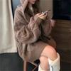 Ретро-твист однотонный свитер на молнии кардиган осень и зима свободный ленивый ветер с капюшоном вязаный кардиган куртка женская