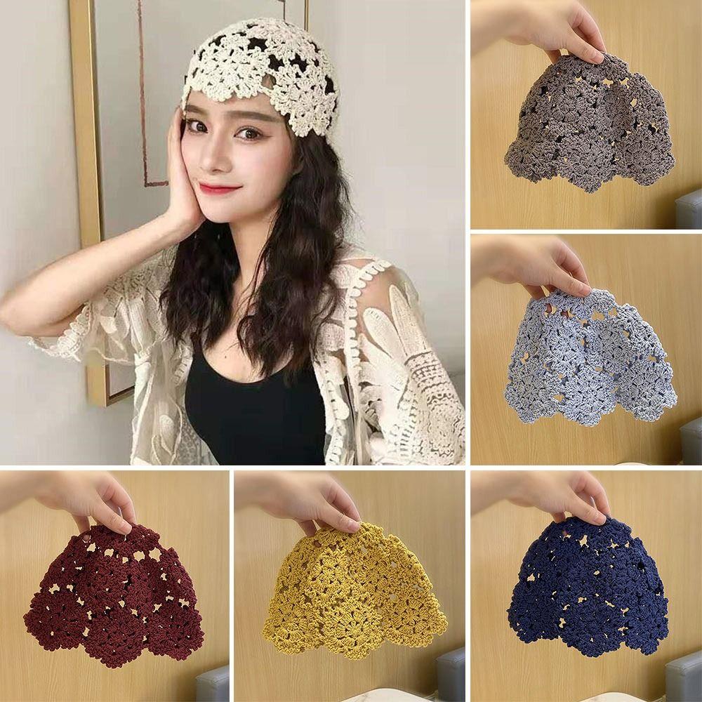 Дышащая ажурная вязаная шапка, берет с кружевными цветами, повседневная модная шапка-бини для женщин