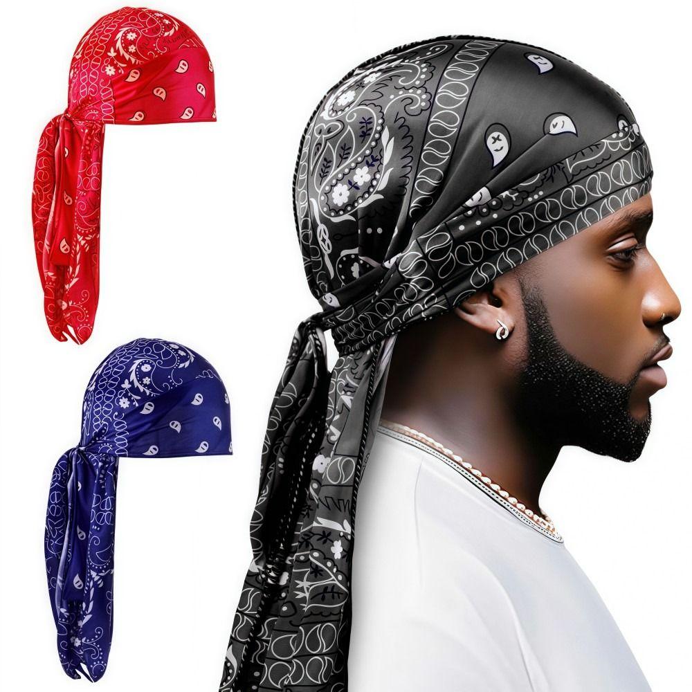 Модная мужская бандана с принтом амебы, имитация шелка, дышащая, с длинным хвостом, пиратская шапка, принт волны, легкая велосипедная шапка для улицы — купить товар онлайн с бесплатной доставкой по всему миру!