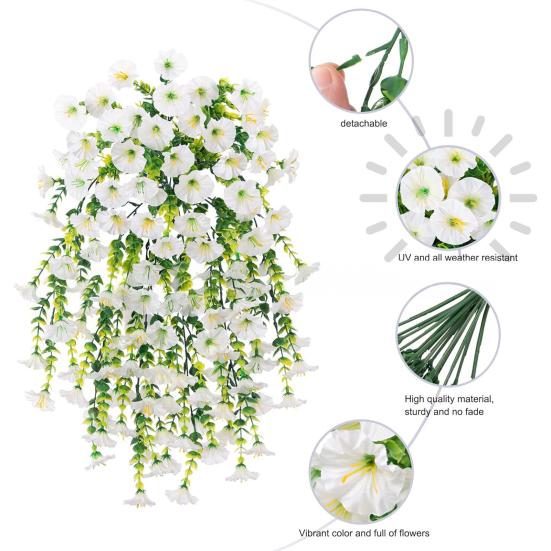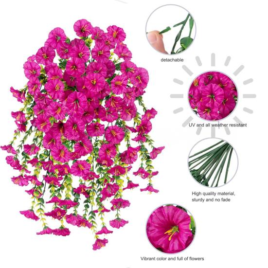 Реалистичный реализм: Эти искусственные подвесные цветы петунии для улицы отличаются замысловатыми деталями и текстурами, с потрясающей точностью имитируя настоящие цветы.. Наслаждайтесь красотой природы без усилий, поскольку их яркие цвета добавят нотку естественной элегантности любой обстановке.