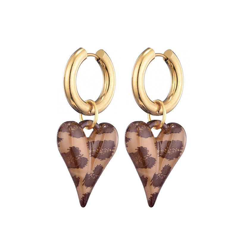 Новые Модные Акриловые Смоляные Леопардовые Сердечные Подвески Кольца Серьги Женские Золотой Цвет Толстая Нержавеющая Сталь Застежка для Ушей Женские Украшения