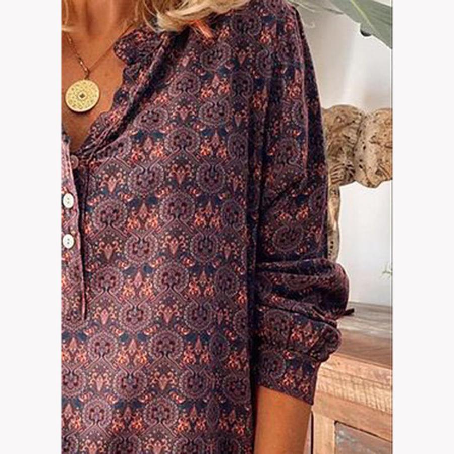 Рубашка Новый Стиль Женская Весна Осень Ретро Принтованная С Длинным Рукавом Свободная Рубашка
