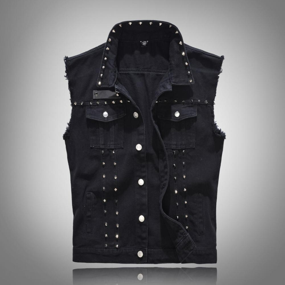 Men's Spring, Summer and Autumn Black Large Size Vest Motorcycle Rivet Vest Slim Waistcoat Vest — купить товар онлайн с бесплатной доставкой по всему миру!