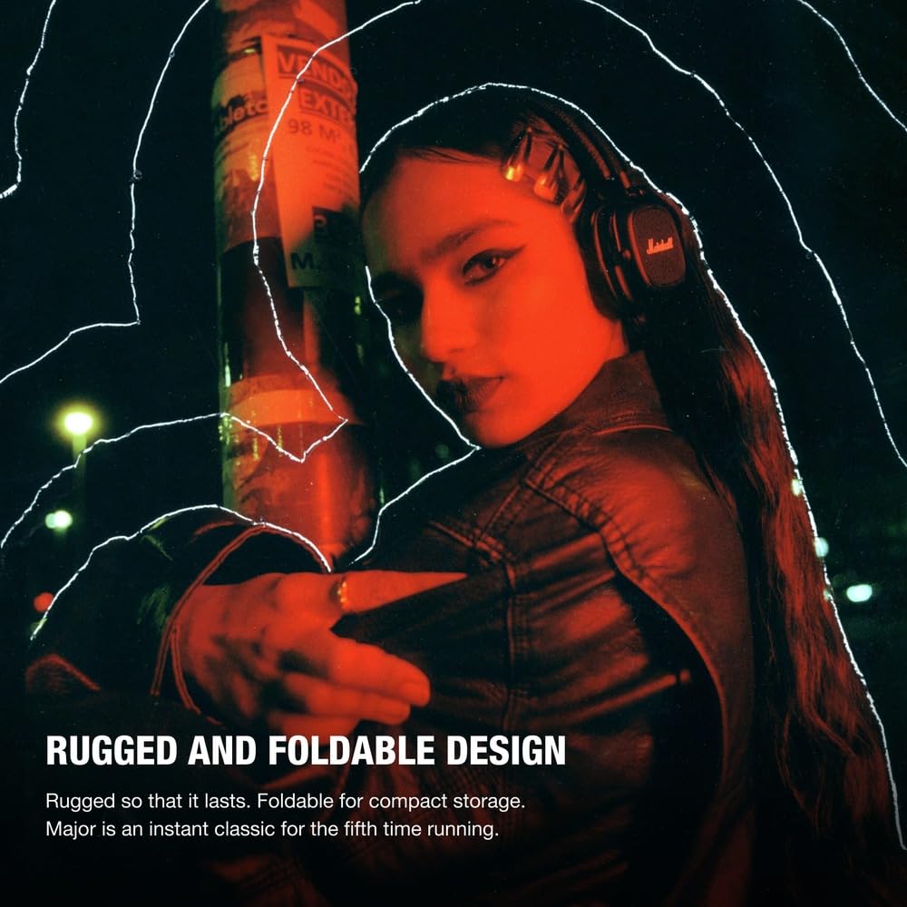 Беспроводные накладные наушники Marshall Major V, черные, Bluetooth, 100 часов воспроизведения, зарядка Qi и поддержка звонков [Официальный японский продукт]