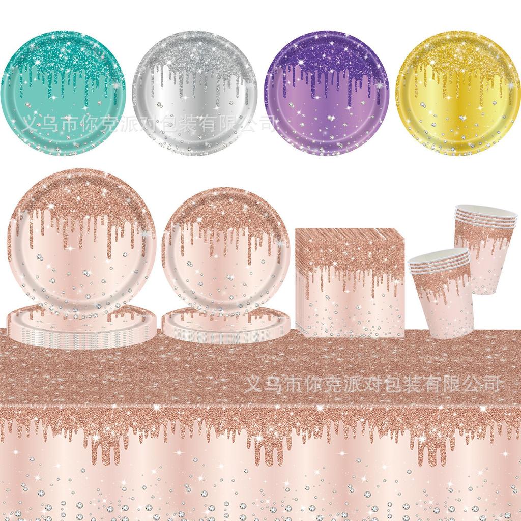 Платиновый Тематический Набор Бумажных Тарелок для Первого Дня Рождения, Одноразовые Бумажные Стаканчики, Салфетки, Скатерти, Украшение Сцены для Тематической Вечеринки по случаю Дня Рождения