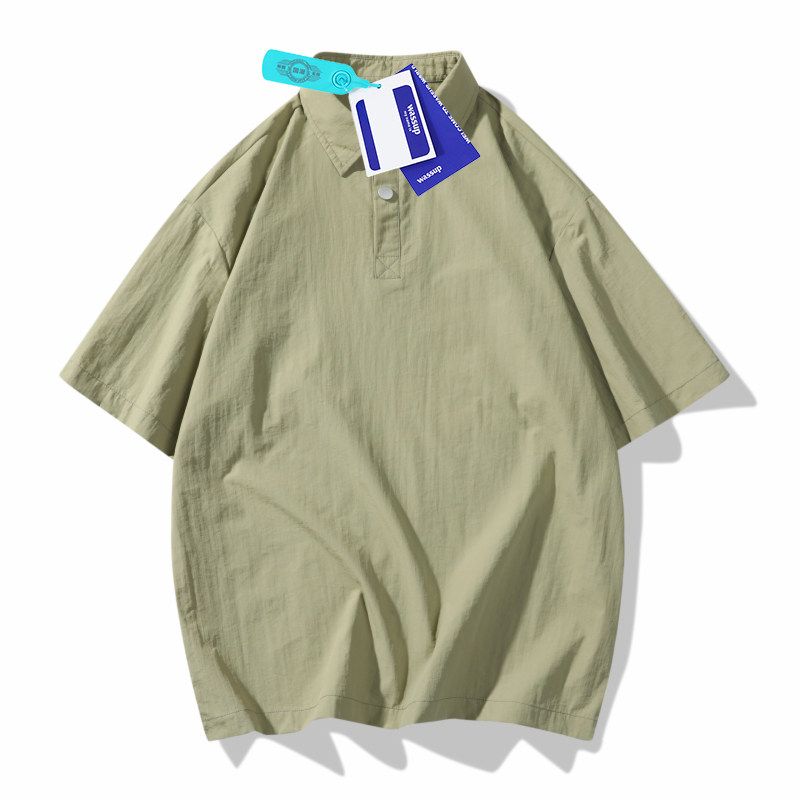Wassup American-Style Solid Color Polo Shirt Short-Sleeved Men's Summer Trendy Brand Loose Versatile T-Shirt Retro Half-Sleeve Top