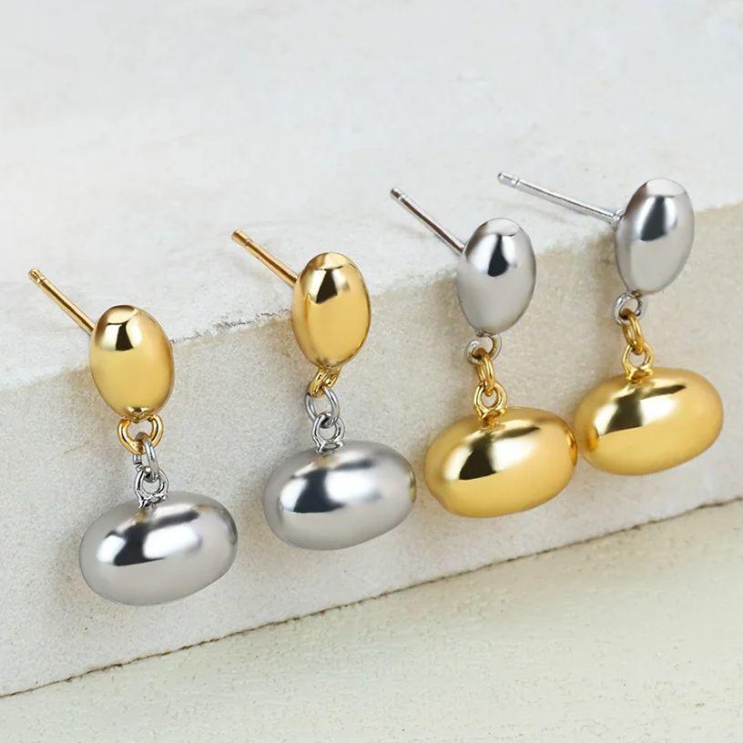 Luxury Double Spliced Oval Stud Earrings For Women Stainless Steel Drop Earring Fashion Aesthetic Christmas Jewelry Gift — купить товар онлайн с бесплатной доставкой по всему миру!