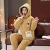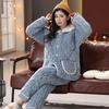 Пижама женская трехслойная утолщенная и милая зимняя можно носить больших размеров теплая стеганая домашняя одежда