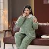 Пижама женская трехслойная утолщенная и милая зимняя можно носить больших размеров теплая стеганая домашняя одежда