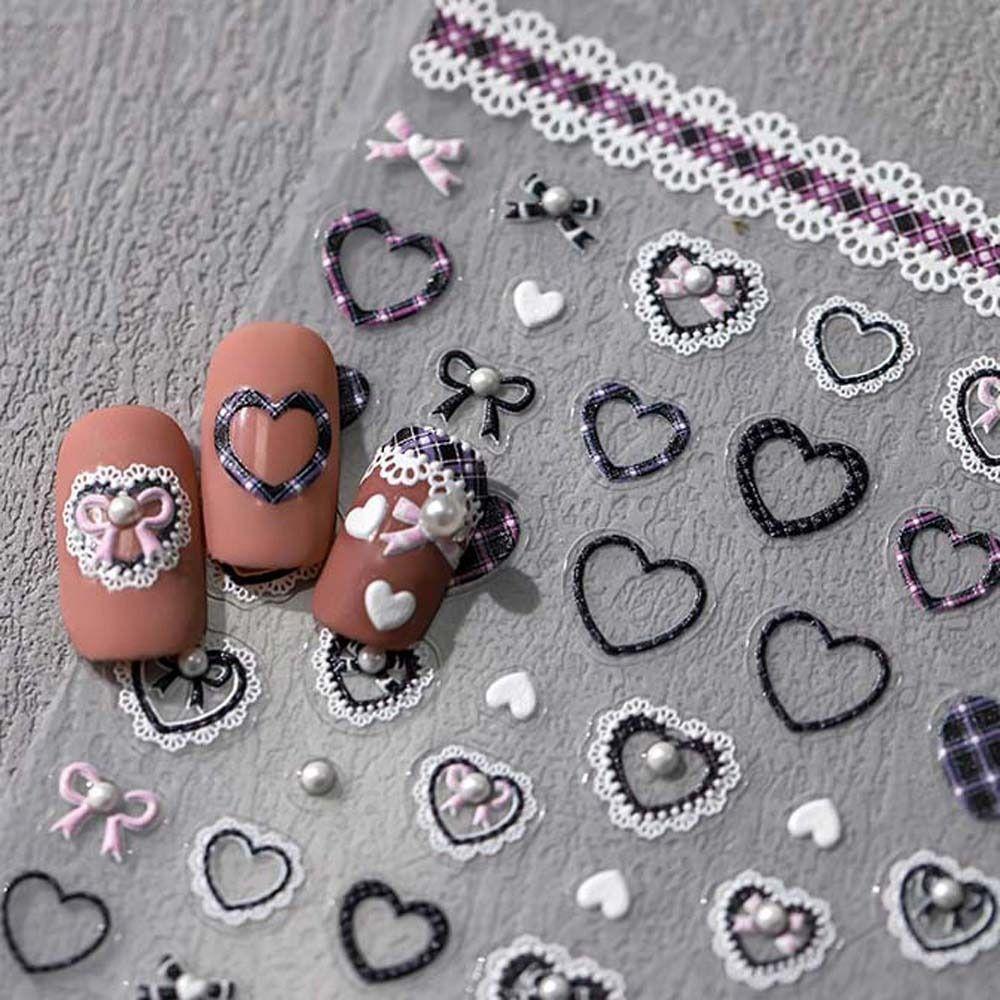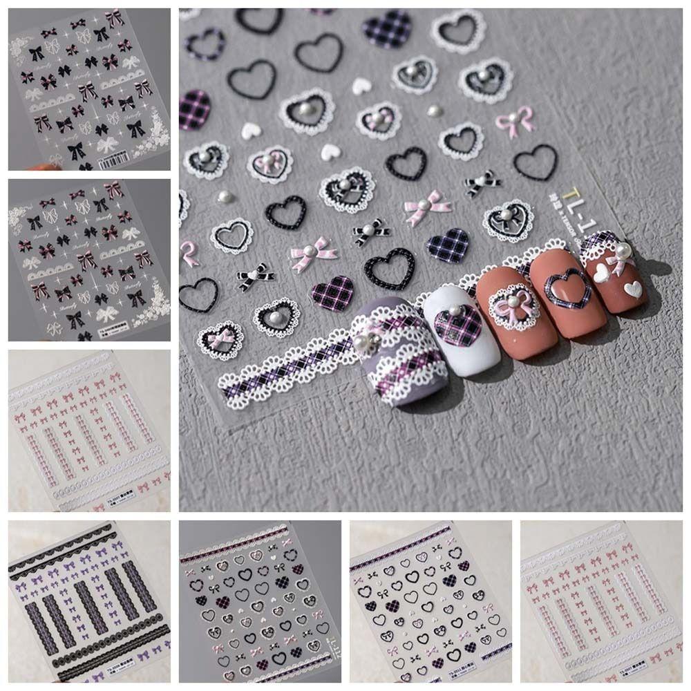 Розовый Белый Черный Кружевной Бантик Наклейки Для Ногтей Украшения Для Ногтей Салон Красоты
