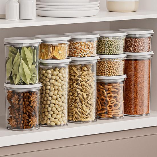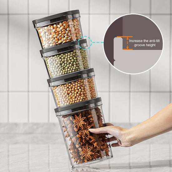 Штабелируемый для максимальной организации: Инновационный штабелируемый дизайн позволяет надежно складывать несколько банок, оптимизируя вертикальное пространство в вашей кладовой или шкафах. Идеально подходит для хранения различных сухих продуктов, таких как макароны, крупы, мука, сахар, закуски, орехи, кофе и чай, поддерживая порядок на кухне.