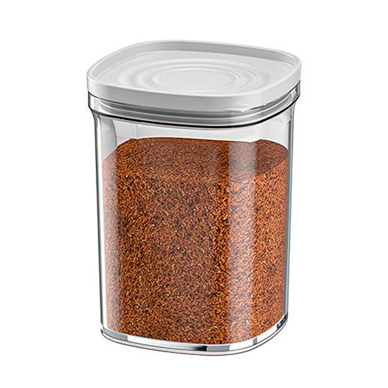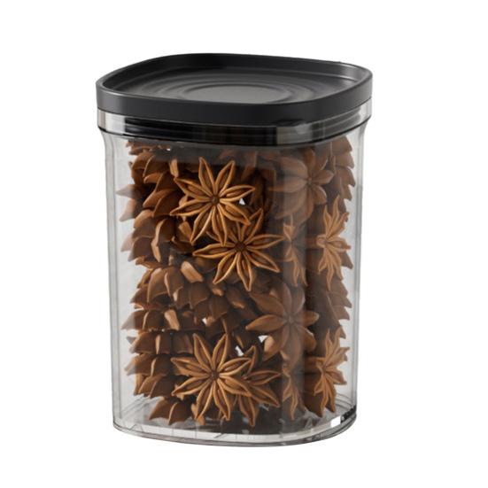 Компактный и компактный дизайн: Эта герметичная банка имеет компактные размеры, которые идеально вписываются в любой кухонный уголок или щель в шкафу.. Его малый размер максимально увеличивает вашу зону хранения, не занимая ценное место на столешнице или полке, что делает его идеальным для кухонь любого размера, стремящихся к эффективной организации.