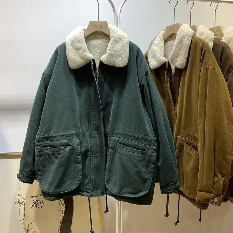 Пальто для женщин Зимняя хлопковая куртка Утепленное бархатное Меховой воротник Приталенное Свободное Повседневное Пальто Топ